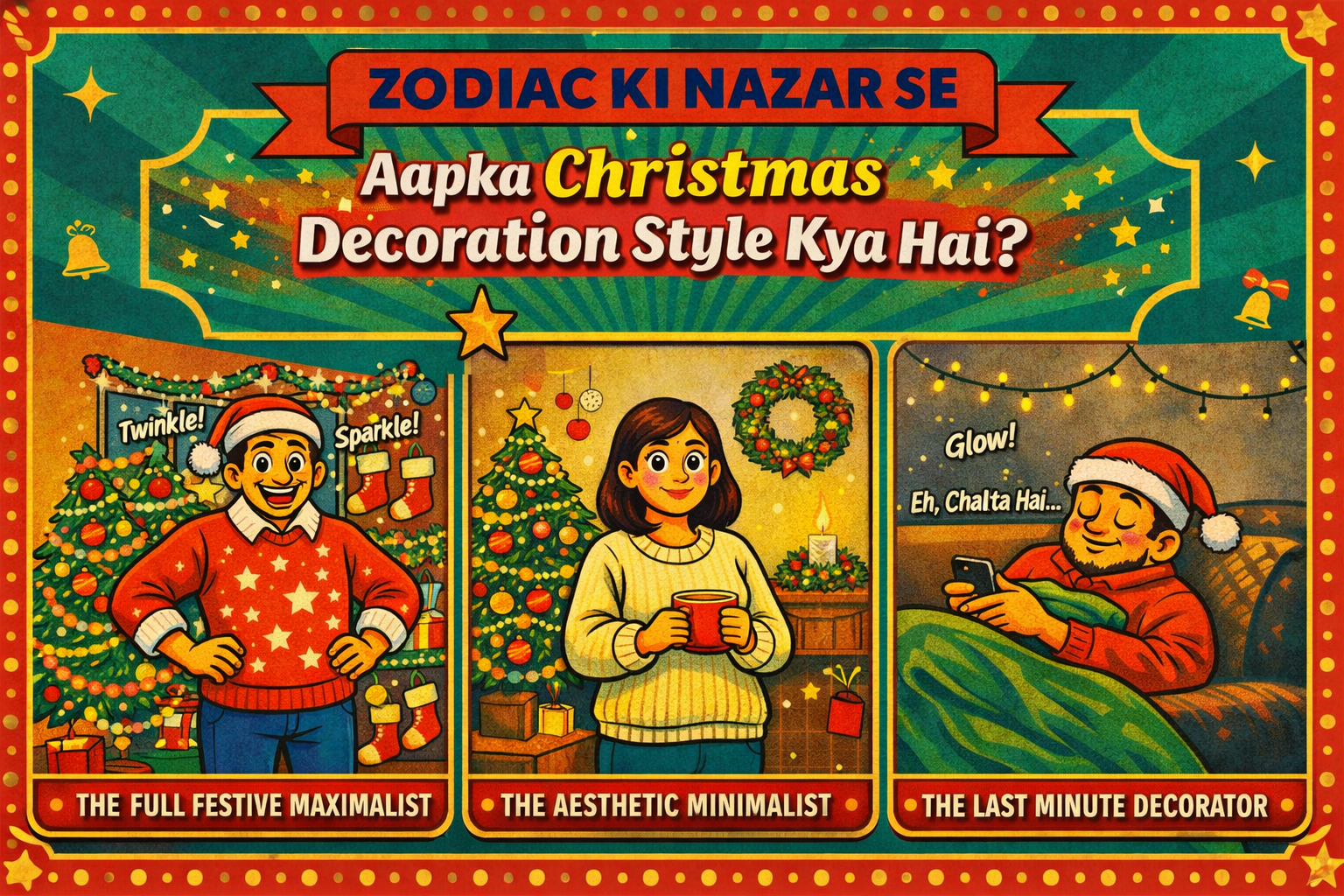CHRISTMAS AATE hi ghar sirf ghar nahi rehta — ya toh woh Pinterest board ban jaata hai, ya phir exactly waisa hi rehta hai jaise November mein tha, bas ek Santa cap add ho jaati hai. Kuch log lights aur ornaments ke bina December imagine hi nahi kar sakte, aur kuch log genuinely confuse rehte hain ki “aakhir decorations kahaan se start karu?”. Truth yeh hai ki aapka Christmas decor style aapki personality ka full extension hota hai — aur stars ismein bhi apna role play karte hain.