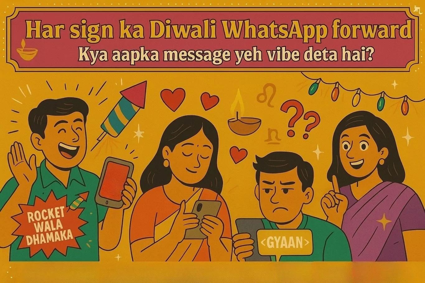 HAR DIWALI PE WhatsApp ka ek hi pattern hota hai — subah se phone chim chim karta rehta hai aur 127 unread messages dikhte hain, mostly the same “May this festival bring you joy and prosperity” line copy-pasted with different glittery fonts. Lekin agar aap thoda dhyaan se dekhein, toh har message ek zodiac sign ka hi flavour hota hai. Koi rocket energy se “Boom boom Diwali vibes!” bhej raha hota hai, koi spreadsheet ke format mein wish likhta hai, aur koi sirf “Same to you” likh kar vanish ho jaata hai.