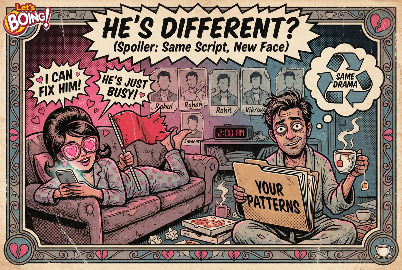 Aur phir? 3 mahine ka detox. "Healing Era" waali aesthetic reels. Aur phir wapas: "Yaar, I met someone cute."