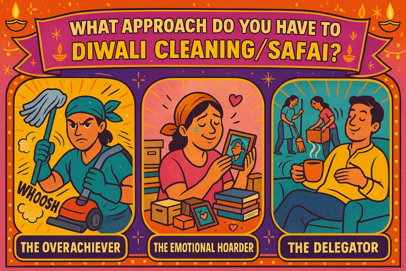 DIWALI festival se pehle sabse bada ritual hota hai — safai. Aur har ghar mein koi na koi drama zaroor hota hai! Aries ke liye Diwali cleaning ek sprint race hoti hai, Taurus log har shelf ko spa treatment dete hain, aur Gemini halfway pe Netflix chalu kar dete hain. Virgo ka toh OCD mode full-on hota hai, aur Pisces log sentimentally purani magazine padte rehte hain. Dekhein aapka zodiac kis safai category mein aata hai — cleanliness ke champion ya certified procrastinator?