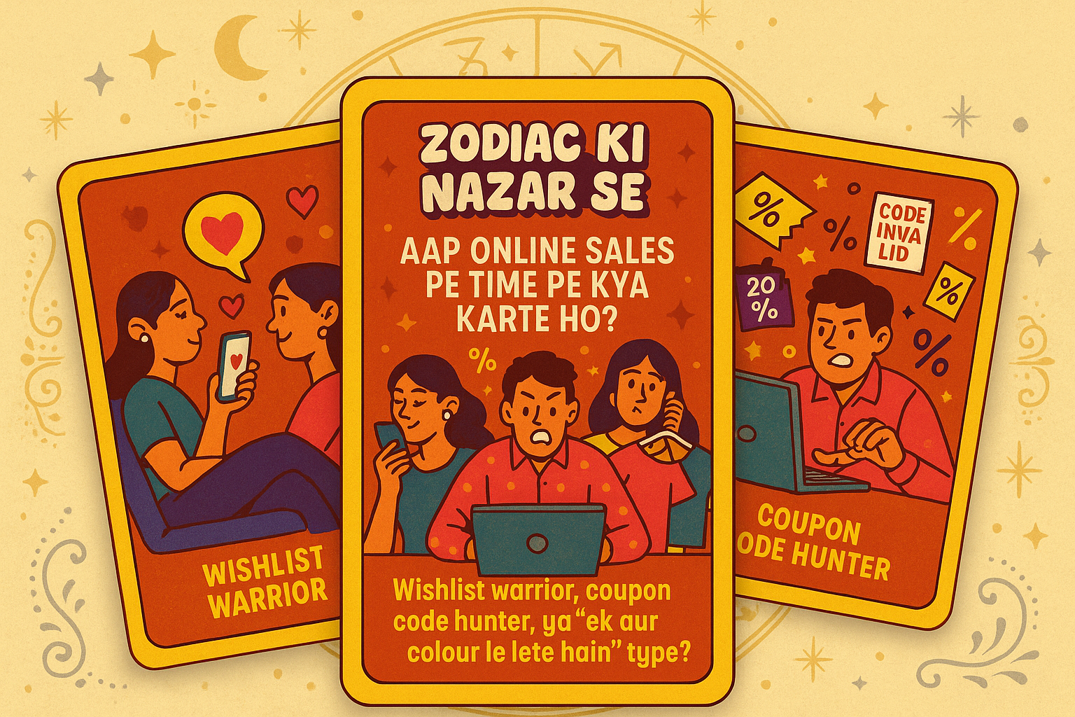Online sale ka mahasangram shuru ho chuka hai. Cart full hai, guilt half hai, aur cosmic chaos peak pe. Chalo decode karte hain—kaun kis game ka master hai sale ke naam par: