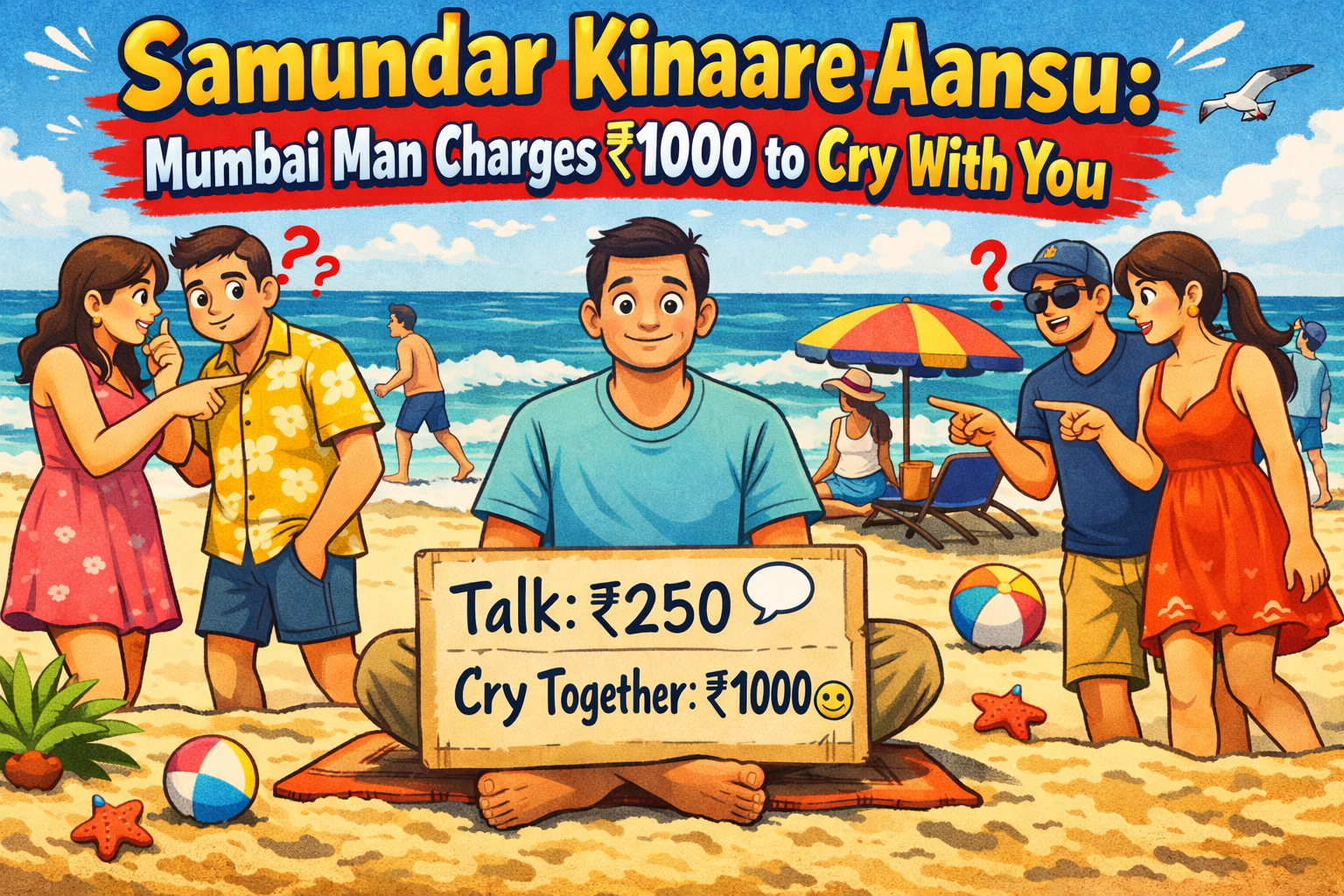 1. A Mumbai man went viral for offering to simply listen to people’s problems on a beach — for a fee.