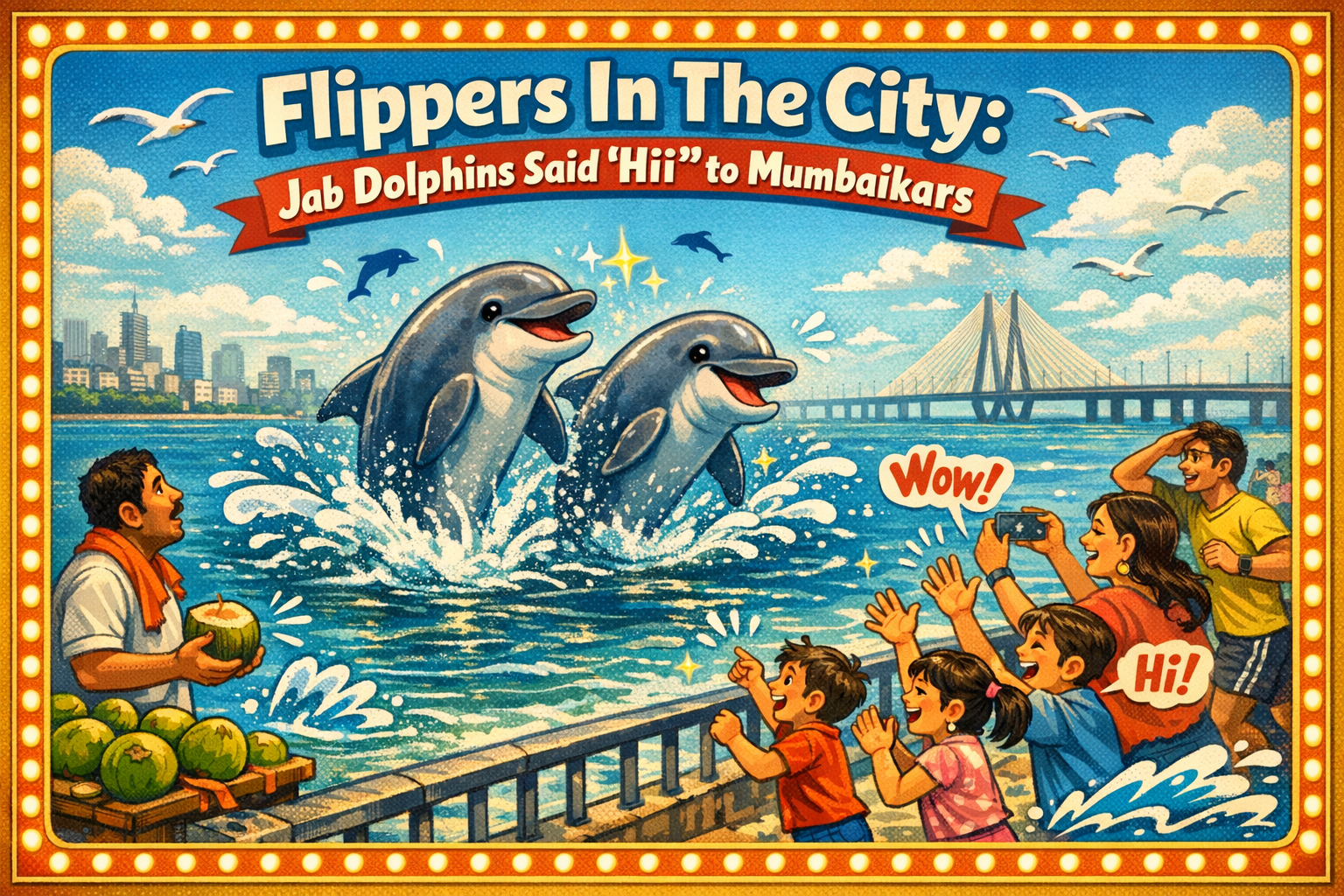 Pehle kuch log soch rahe the ki ye koi water illusion hai. Par jaise hi fin surface par aaya, sab ne cameras nikaale. Ye classic nature-meets-city moment tha — dolphins ne Mumbai pe akele hi tourism campaign chala diya. Log hass rahe the, cheer kar rahe the, aur waves ki beats ke beech yeh dolphin cameo pura viral ho gaya.
